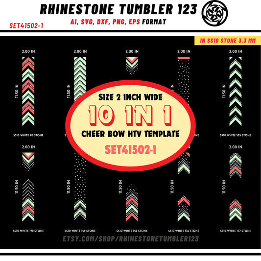 10 Cheer Bow Rhinestone Template with HTV, V tail, 2 inch rhinestone digital download for cricut, svg, eps, png, dxf, cdr, SS10 SET41502-6
