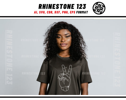 Victory Sign Hand Gesture Rhinestone Template for Cricut rhinestone template material rhinestone SS10 Instant Download File svg eps png dxf