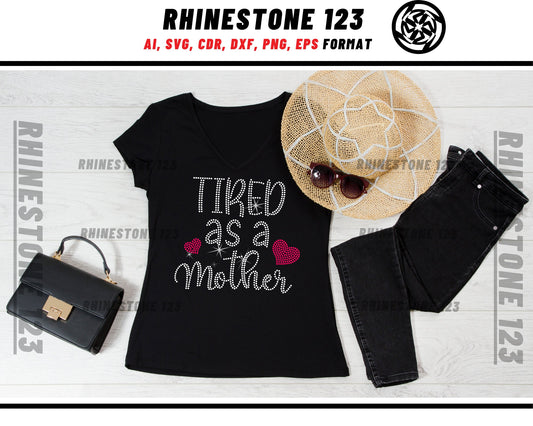Tired As A Mother Rhinestone Template, Rhinestone SVG, cricut, silhouette, Rhinestone File for SS10, PNG, AI, cdr, dxf, eps