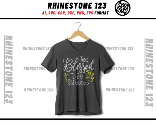 Too Blessed To Be Stressed Rhinestone Template, cricut, silhouette, Rhinestone SVG, Rhinestone File for SS10, PNG, AI, cdr, dxf, eps