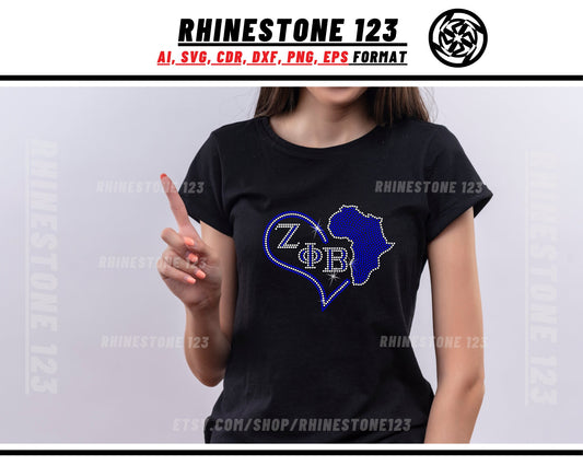 Zeta Phi Beta with Africa Heart Rhinestone Template, cricut, silhouette, Rhinestone SVG, Rhinestone File for SS10, PNG, cdr, dxf, Sorority