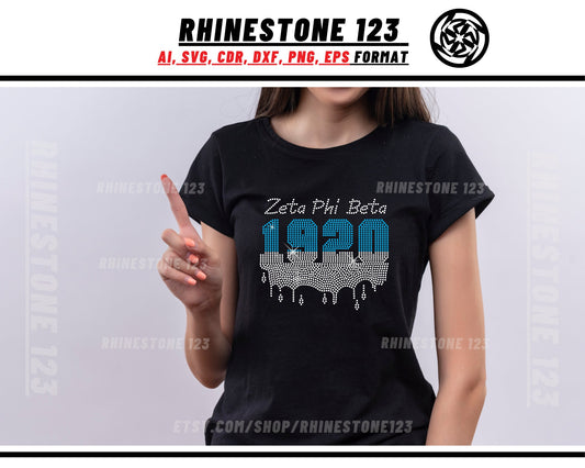 1920 Cutting Zeta Phi Beta Rhinestone Template, Rhinestone File for SS10, Rhinestone SVG, cricut, silhouette, PNG, AI, cdr, dxf, eps
