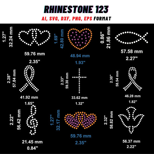 10 Small designs bundle rhinestone template | digital instant download file svg eps png, cut file, Dot Art print