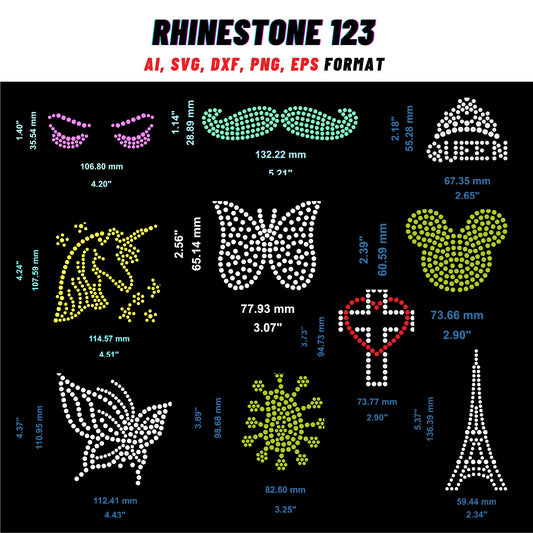 SMALLDESIGN BUNDLE 10 IN 1 Queen svg Unicorn Svg Butterfly Rhinestone Template for Cricut rhinestone template material rhinestone 10ss