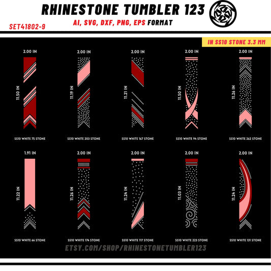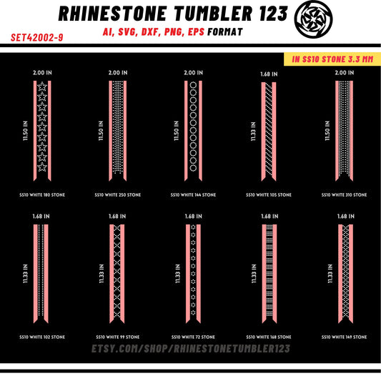 10 Cheer Bow Rhinestone Template with HTV, V tail, 2 inch rhinestone digital download for cricut, svg, eps, png, dxf, cdr, SS10 SET42002-9