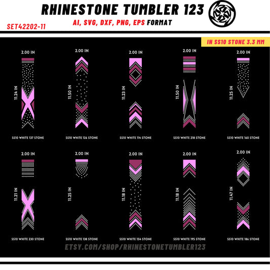 10 Cheer Bow Rhinestone Template with HTV, V tail, 2 inch rhinestone digital download for cricut, svg, eps, png, dxf, cdr, SS10 SET42202-11