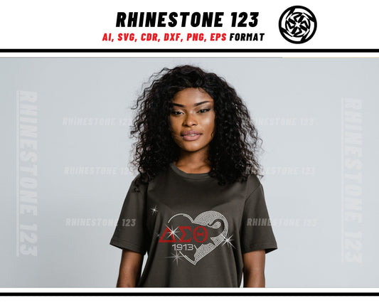 Delta Sigma Theta in Heart Rhinestone Template, Rhinestone File for SS10, Rhinestone SVG, cricut, silhouette, PNG, cdr, dxf, eps, Sorority