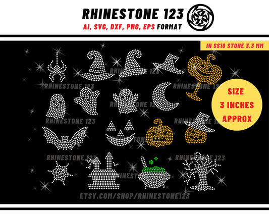 17 in 1 Halloween Bundle Rhinestone Template for Cricut rhinestone template material rhinestone SS10 Instant Download File svg eps png dxf