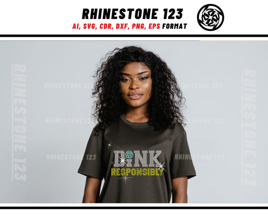 PickleBall Dink Responsibly Rhinestone Template Cutting File for SS10 Rhinestone SVG template for cricut silhouette cameo PNG AI cdr dxf eps
