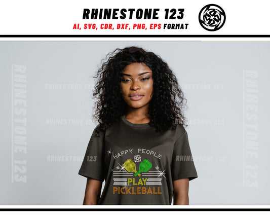 Happy people play PickleBall Rhinestone Template Cutting File for SS10 Rhinestone SVG template for cricut silhouette cameo PNG AI cdr dxf