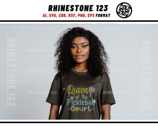 Queen of the PickleBall Court Rhinestone Template Cutting File for SS10 Rhinestone SVG template for cricut silhouette cameo PNG AI cdr dxf