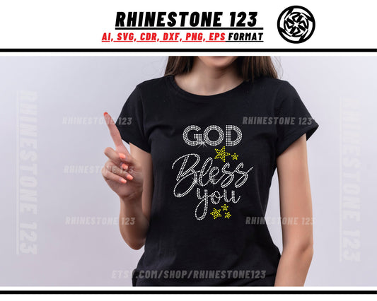 God Bless You Rhinestone Template, Rhinestone File for SS10, Rhinestone SVG, cricut, silhouette, PNG, AI, cdr, dxf, eps