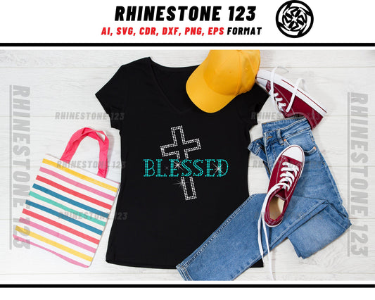 Christ Cross Blessed Rhinestone Template, Rhinestone SVG, cricut, silhouette, Rhinestone File for SS10, PNG, AI, cdr, dxf, eps