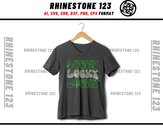 St Patricks Day Lucky Retro Stacked Rhinestone Template, Rhinestone SVG, cricut, silhouette, Rhinestone File for SS10, PNG, cdr, dxf, eps