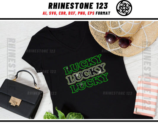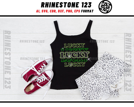 Stacked St Patricks Day Lucky Rhinestone Template, Rhinestone SVG, cricut, silhouette, Rhinestone File for SS10, PNG, AI, cdr, dxf, eps