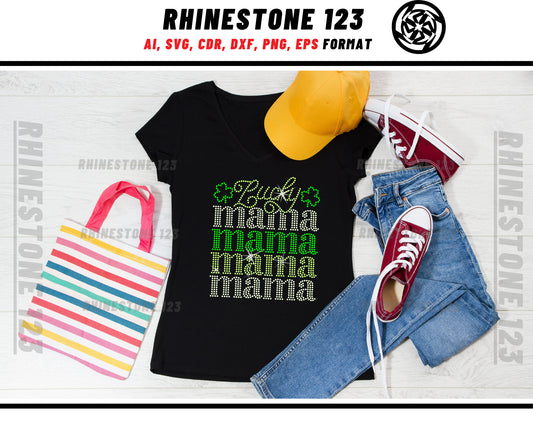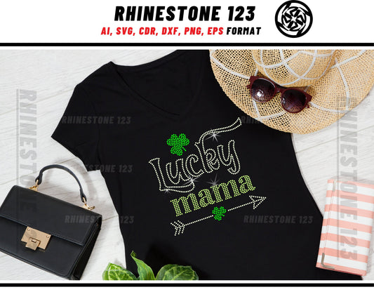 St Patricks Day Lucky Mama Rhinestone Template, cricut, silhouette, Rhinestone SVG, Rhinestone File for SS10, PNG, AI, cdr, dxf, eps