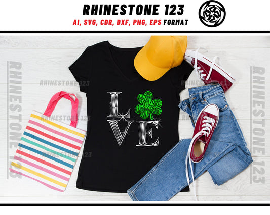 St Patricks Love Clove Rhinestone Template, cricut, silhouette, Rhinestone SVG, Rhinestone File for SS10, PNG, AI, cdr, dxf, eps