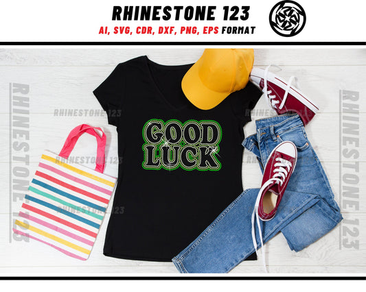 Good Luck St Patricks Day Rhinestone Template, Rhinestone SVG, cricut, silhouette, Rhinestone File for SS10, PNG, AI, cdr, dxf, eps