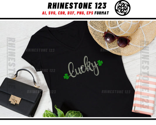 Happy St Patricks Day Lucky Rhinestone Template, Rhinestone SVG, cricut, silhouette, Rhinestone File for SS10, PNG, AI, cdr, dxf, eps