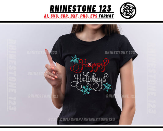 Christmas Happy Holidays Rhinestone Template, cricut, silhouette, Rhinestone SVG, Rhinestone File for SS10, PNG, AI, cdr, dxf, eps