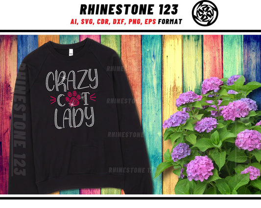Crazy Cat Lady Rhinestone Template, Rhinestone File for SS10, Rhinestone SVG, cricut, silhouette, PNG, AI, cdr, dxf, eps