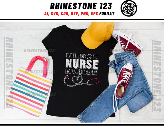 Htv Nurse Stacked Stethoscope Rhinestone Template, cricut, silhouette, Rhinestone SVG, Rhinestone File for SS10, PNG, AI, cdr, dxf, eps