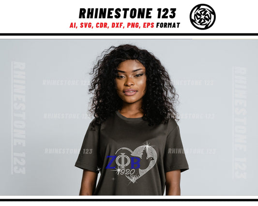 Zeta Phi Beta 1920 Dove Zob Rhinestone Template, cricut, Rhinestone SVG, Rhinestone File for SS10, silhouette, PNG, cdr, dxf, eps, Sorority