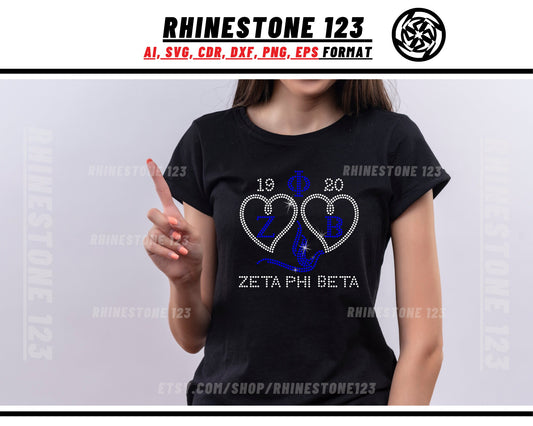 Zeta Phi Beta Heart Rhinestone Template, Rhinestone File for SS10, Rhinestone SVG, cricut, silhouette, PNG, AI, cdr, dxf, eps, Sorority