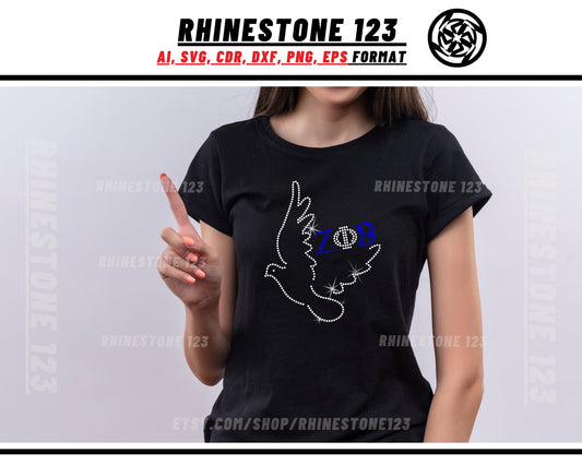 Zeta Phi Beta Dove Zob Rhinestone Template, cricut, silhouette, Rhinestone SVG, Rhinestone File for SS10, PNG, AI, cdr, dxf, eps