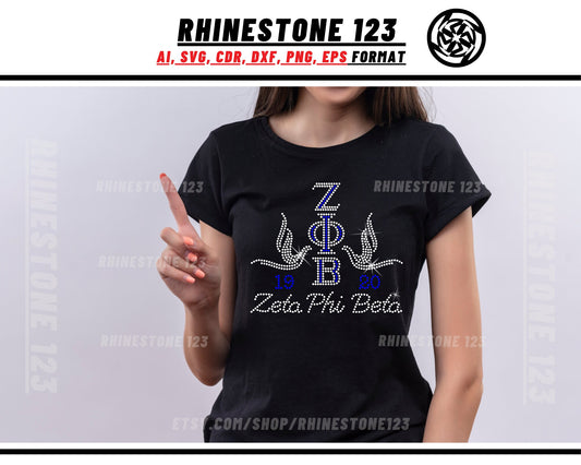 Zeta Phi Beta with Dove Rhinestone Template, Rhinestone SVG, cricut, silhouette, Rhinestone File for SS10, PNG, AI, cdr, dxf, eps, Sorority