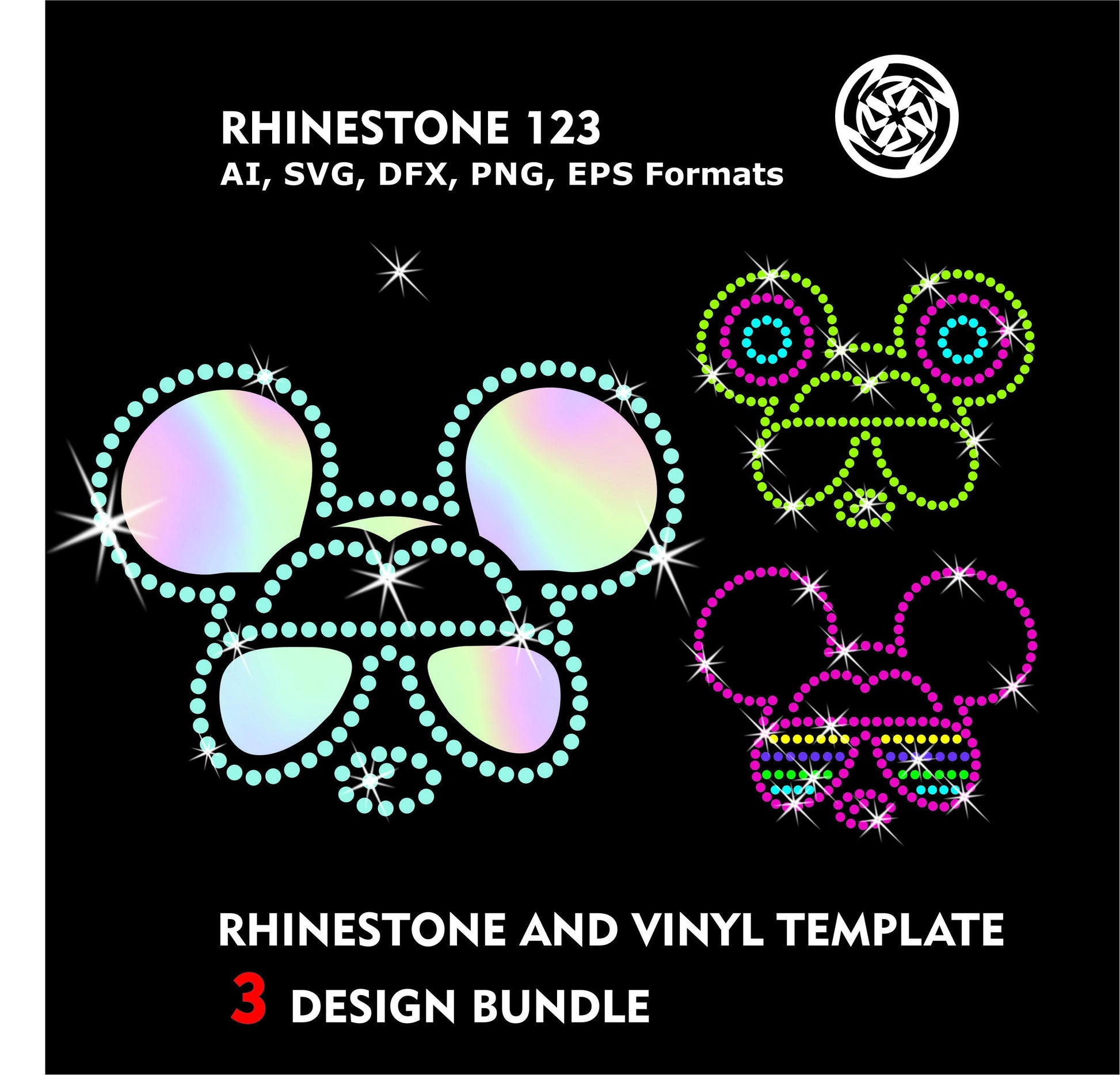 3 bundle Mickey Mouse head rhinestone vinyl template for circut silhouette cameo instant craft png, svg, dxf, ai, vector cutting cut file