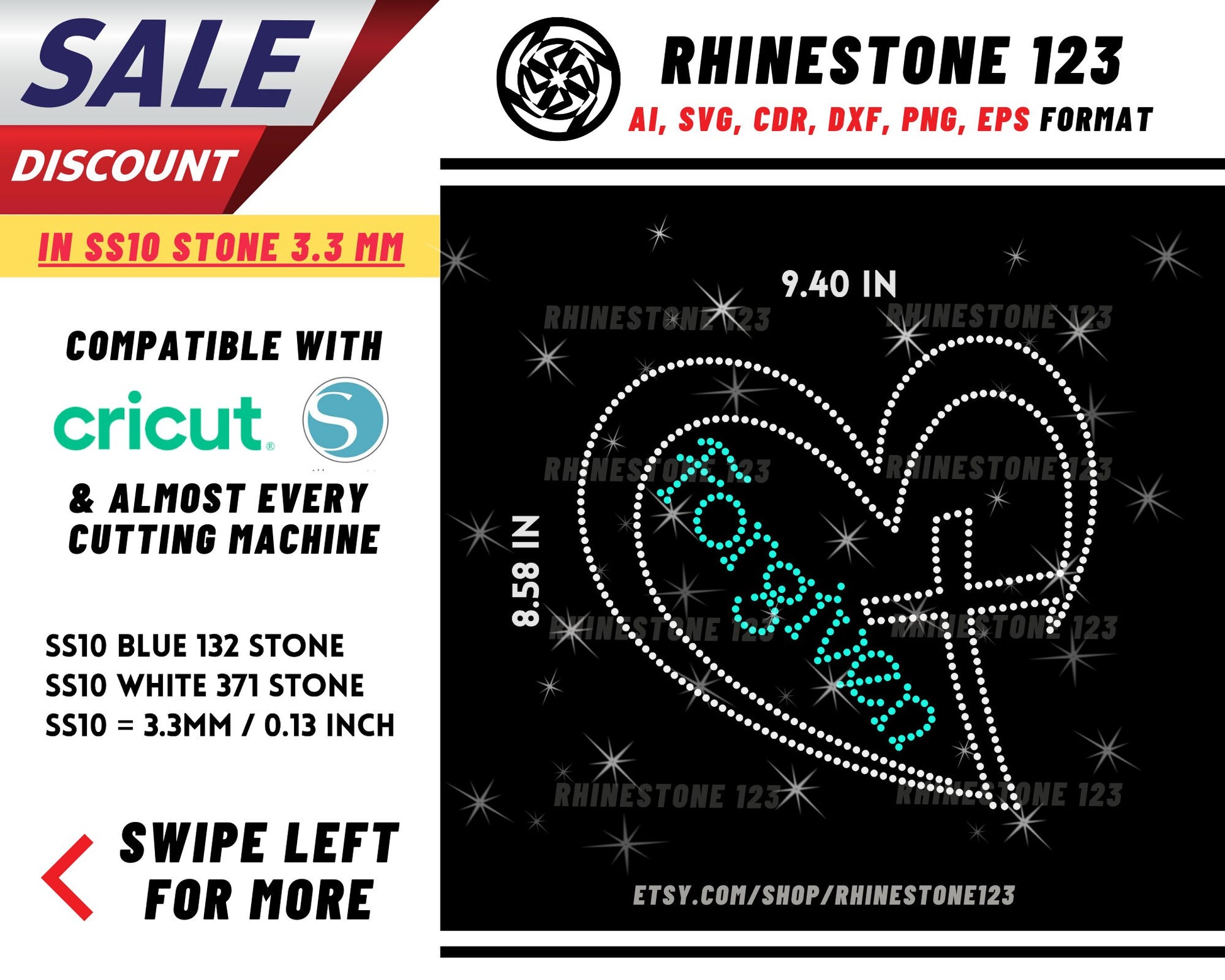 Christ Cross Heart Forgiven Rhinestone Template, Rhinestone SVG, cricut, silhouette, Rhinestone File for SS10, PNG, AI, cdr, dxf, eps