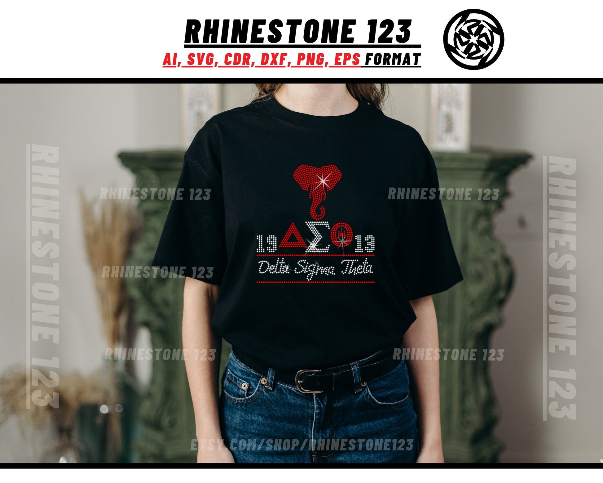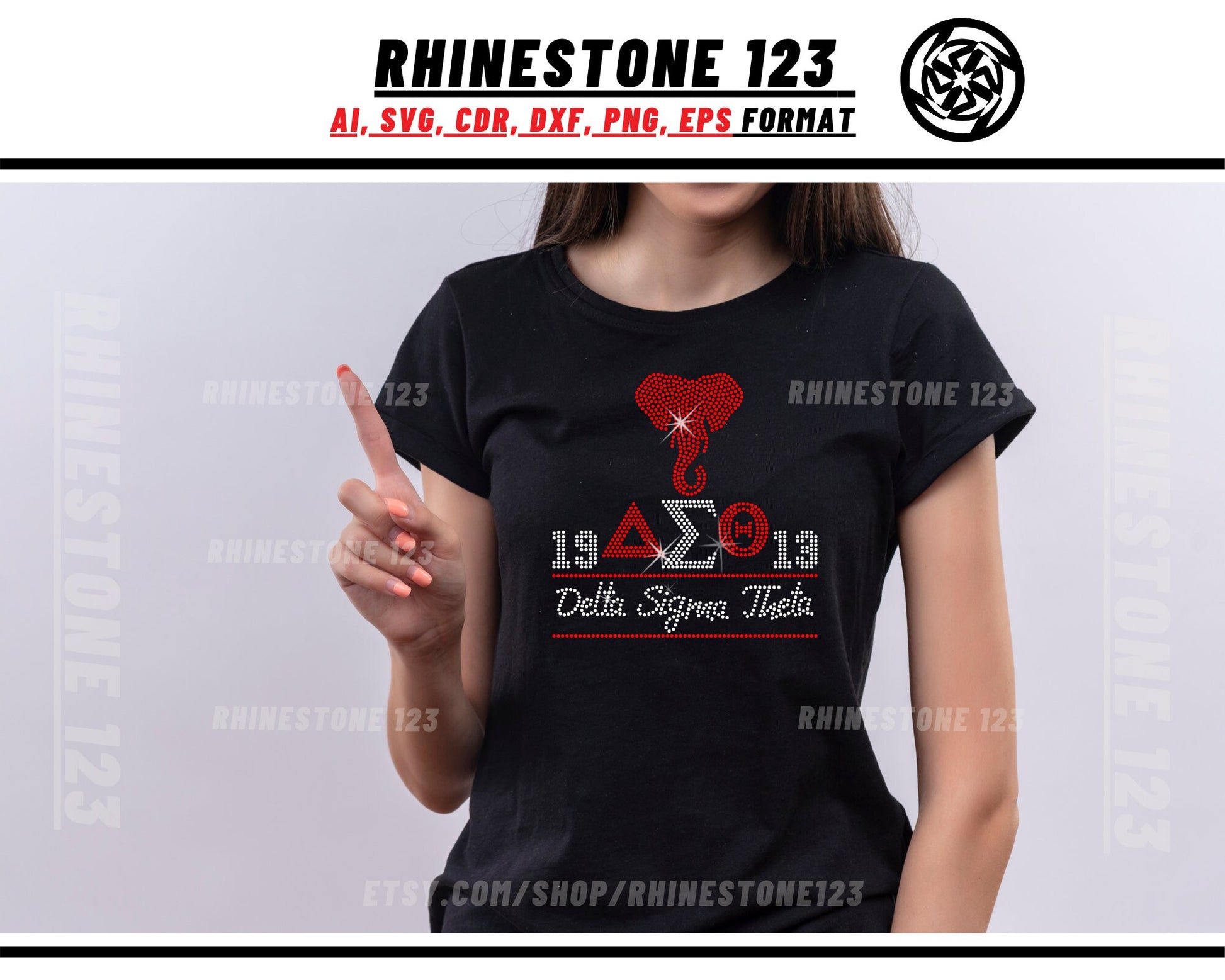 Elephant Aeo Delta Sigma Theta Rhinestone Template, Rhinestone SVG, cricut, silhouette, Rhinestone File for SS10, PNG, AI, cdr, dxf, eps