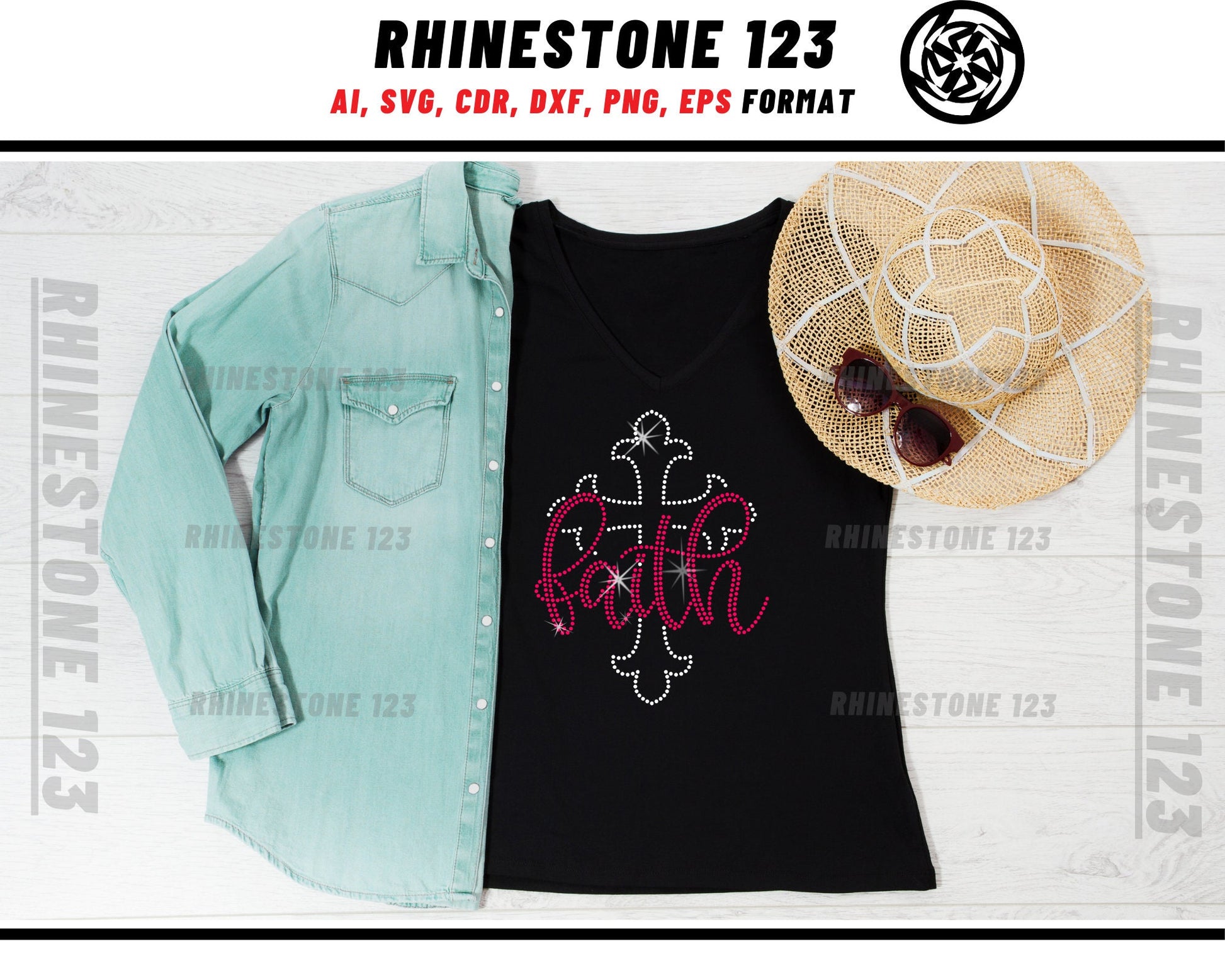 Faith Christ Cross Rhinestone Template for Cricut rhinestone template material rhinestone SS10 Instant Download File svg eps png dxf ai cdr