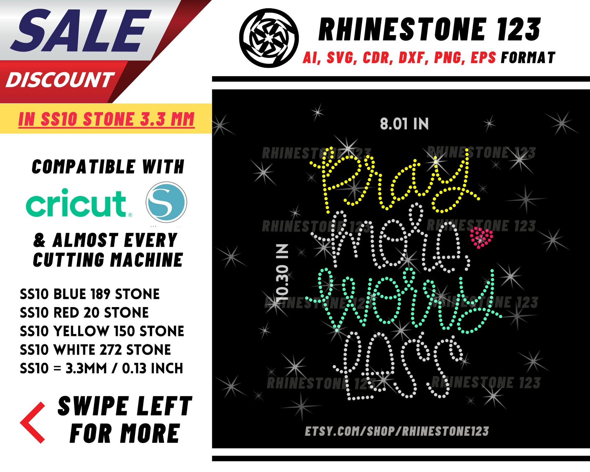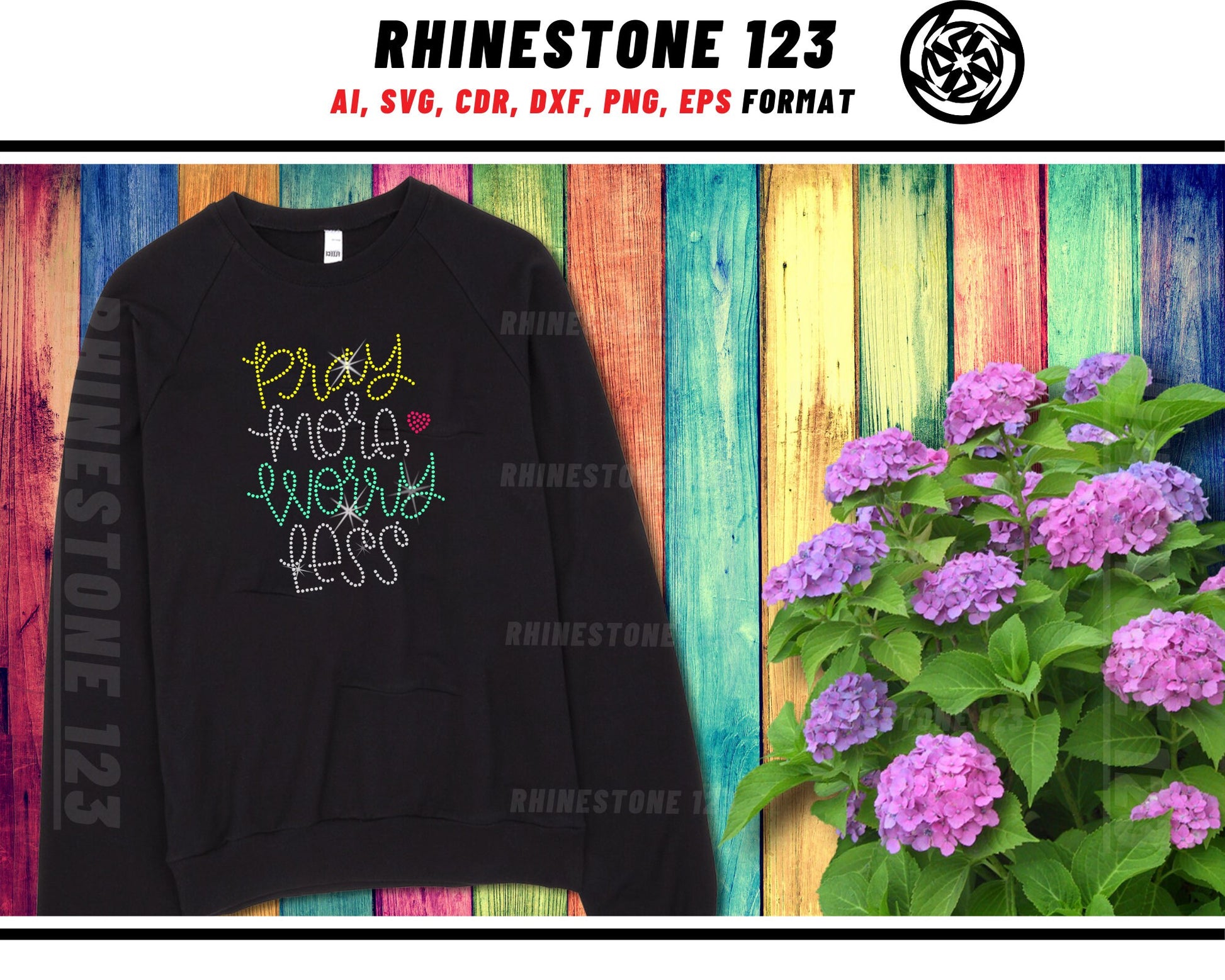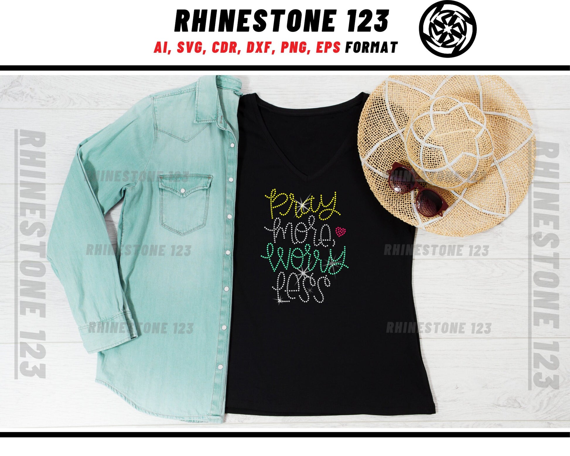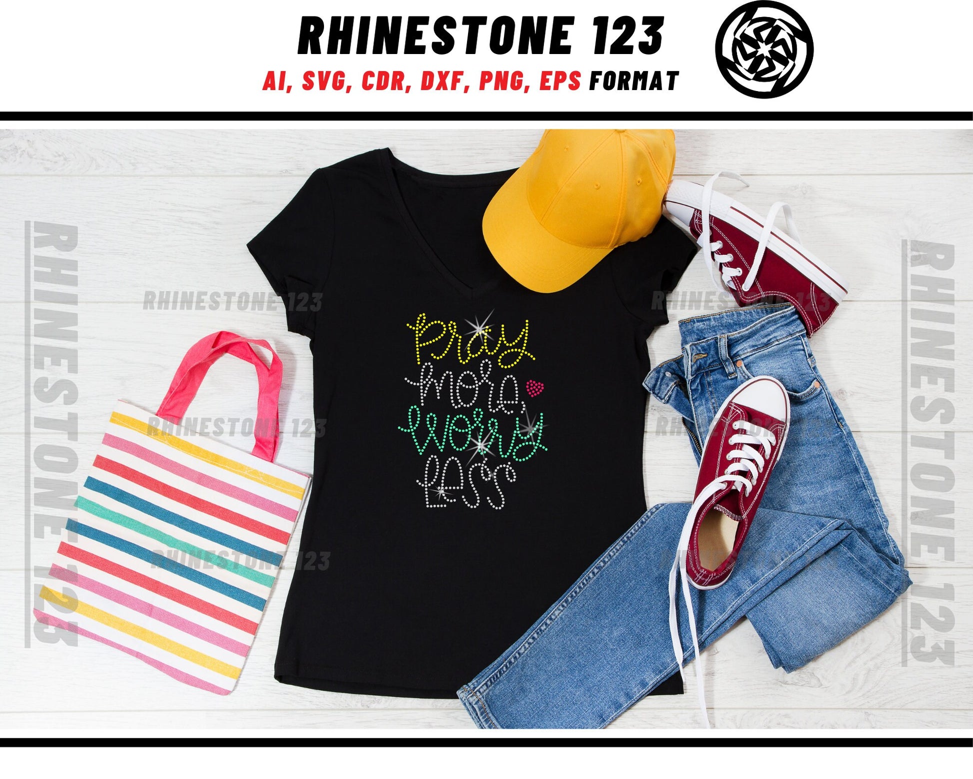 Pray More Worry Less Rhinestone Template, cricut, silhouette, Rhinestone SVG, Rhinestone File for SS10, PNG, AI, cdr, dxf, eps
