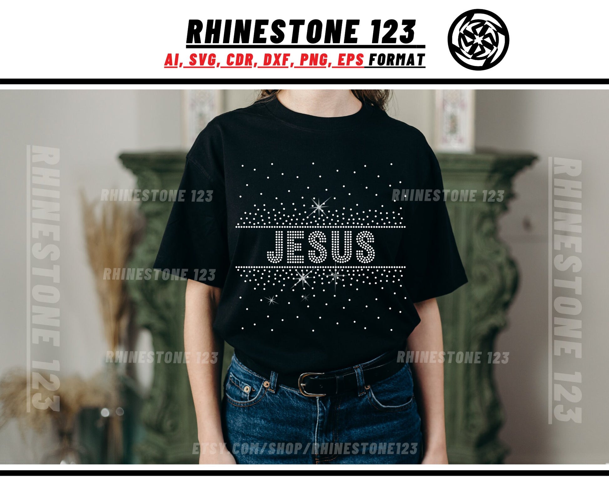 Scattered Fill Jesus Rhinestone Template, cricut, silhouette, Rhinestone SVG, Rhinestone File for SS10, PNG, AI, cdr, dxf, eps