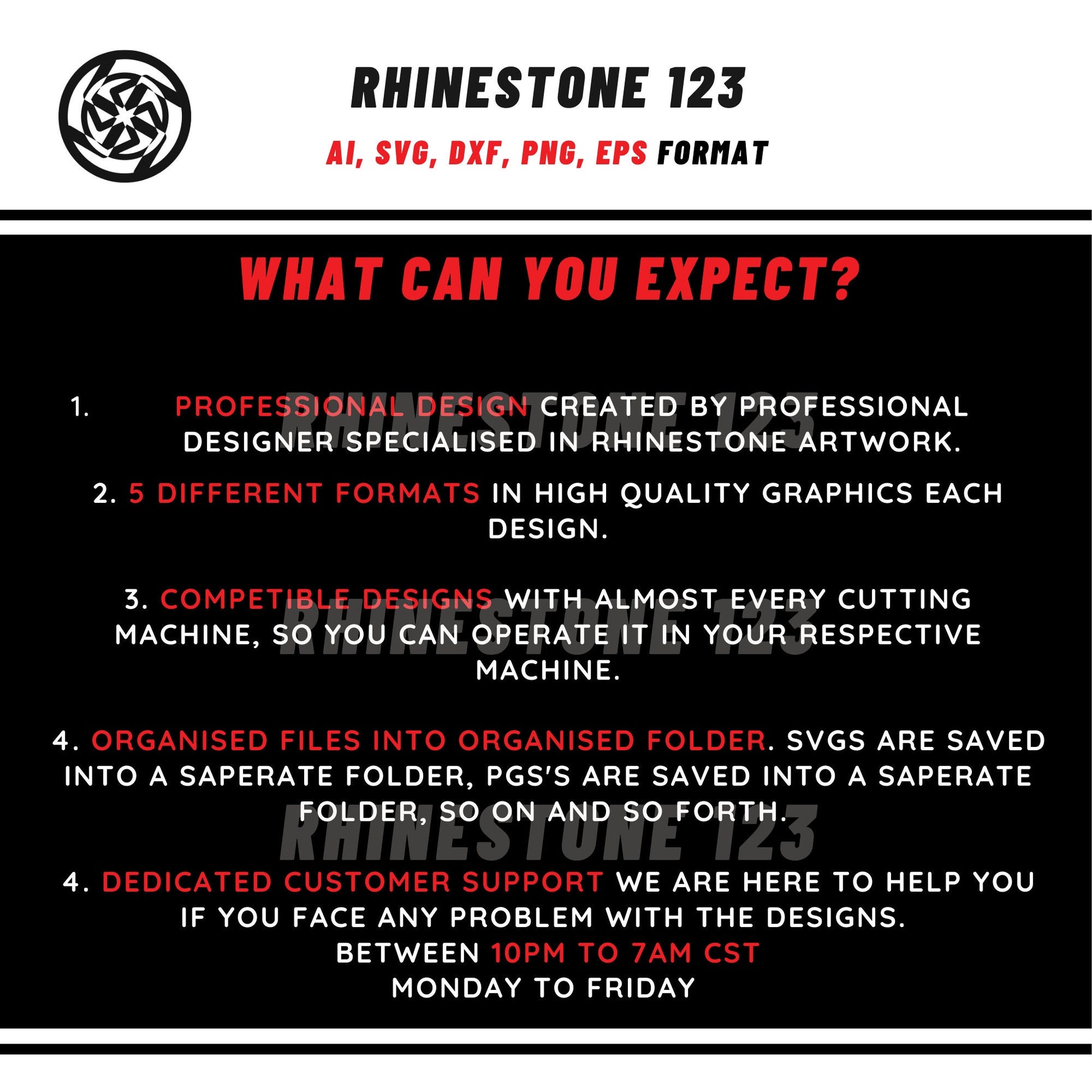 ATTENTION: YOU'RE NOT BUYING A PHYSICAL PRODUCT, THIS IS A DIGITAL RHINESTONE TEMPLATE, INSTANT DOWNLOAD.