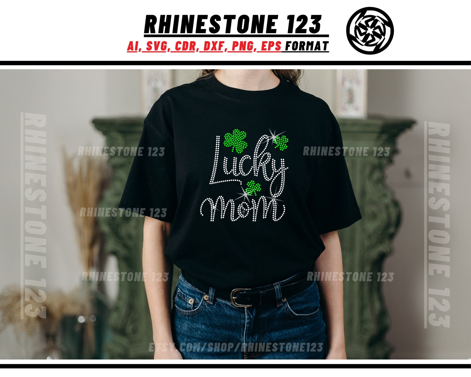 St Patricks Day Lucky Mom Rhinestone Template, cricut, silhouette, Rhinestone SVG, Rhinestone File for SS10, PNG, AI, cdr, dxf, eps