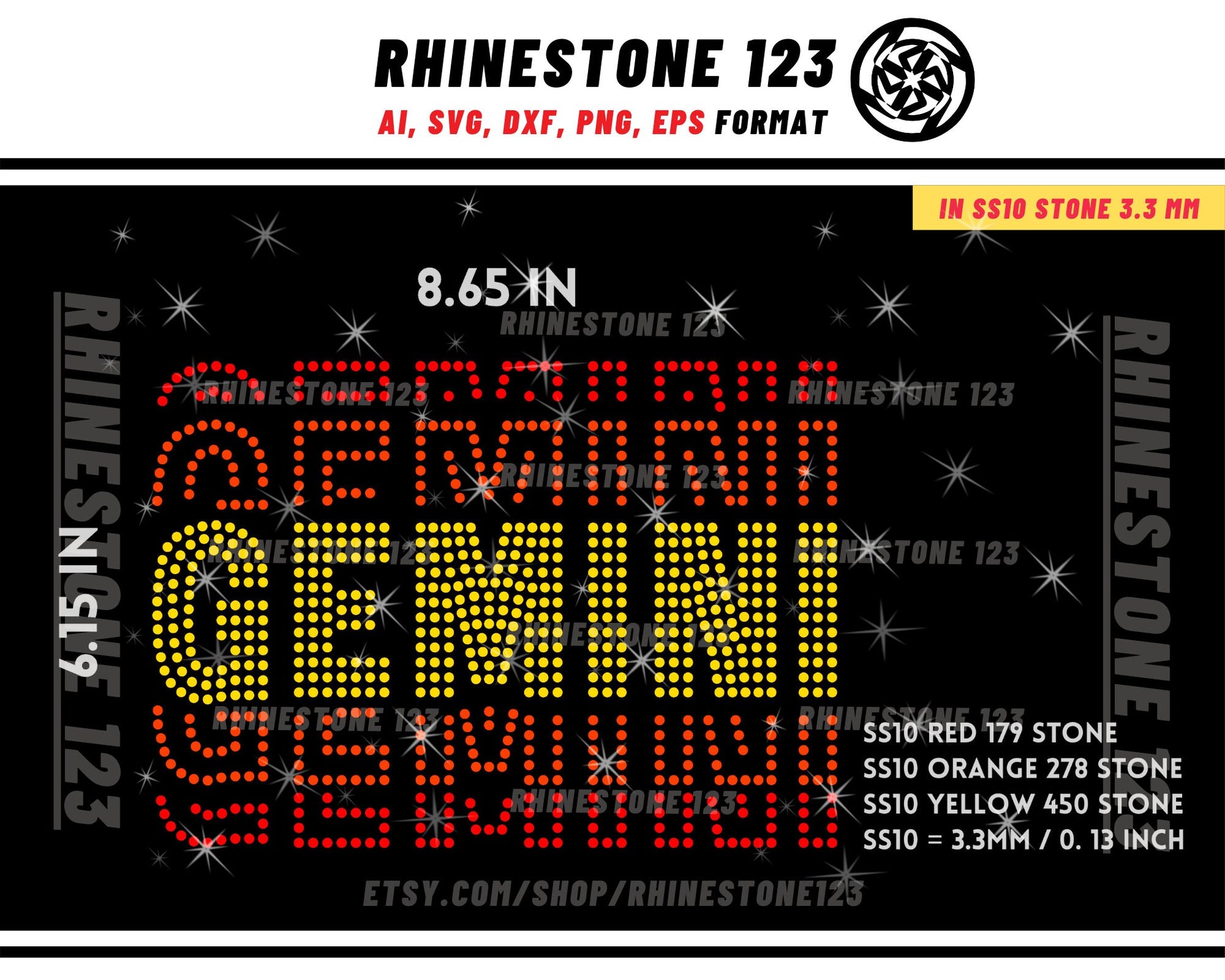 ATTENTION: YOU'RE NOT BUYING A PHYSICAL PRODUCT, THIS IS A DIGITAL RHINESTONE TEMPLATE, INSTANT DOWNLOAD.