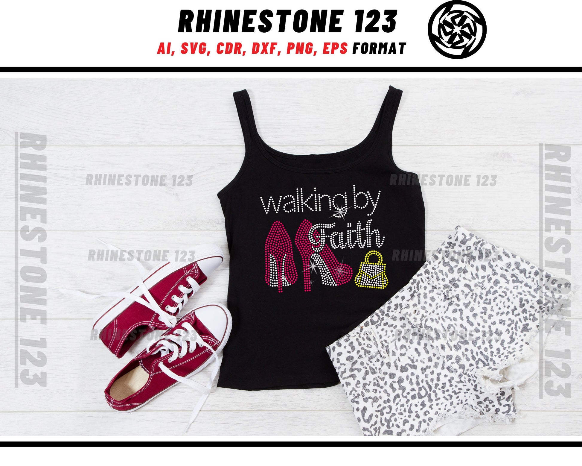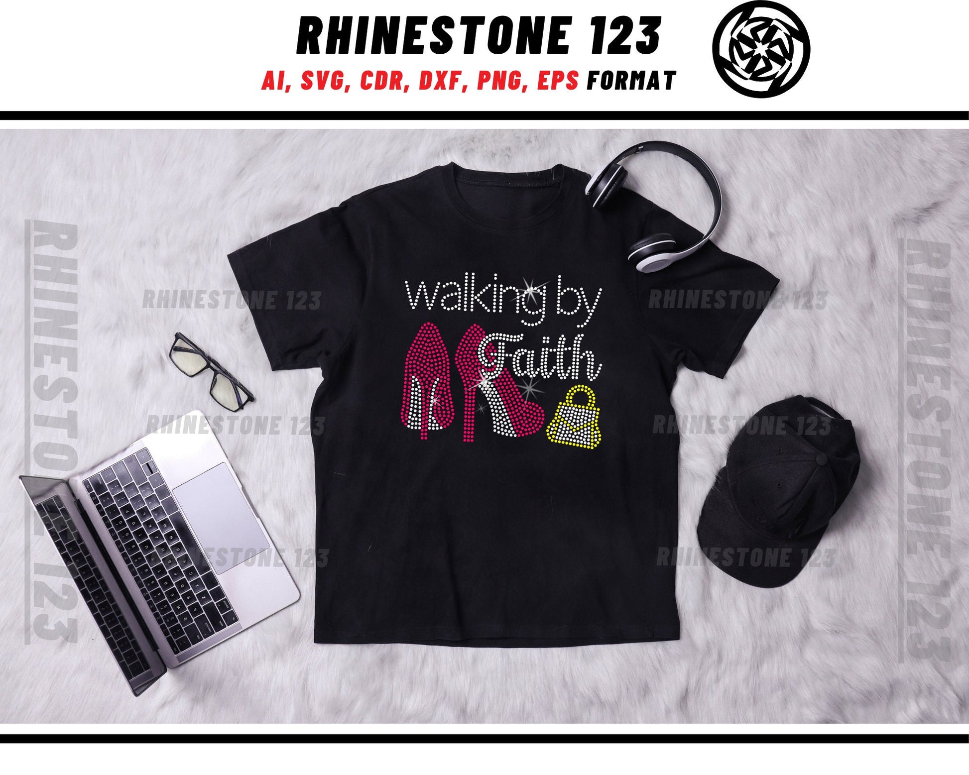 Walking by Faith Rhinestone Template, Rhinestone File for SS10, Rhinestone SVG, cricut, silhouette, PNG, AI, cdr, dxf, eps