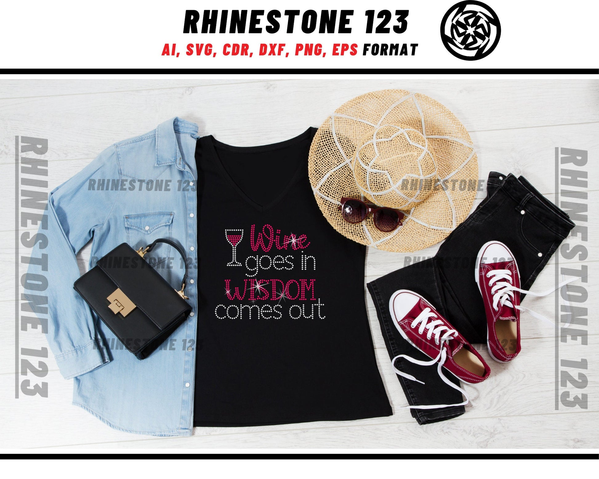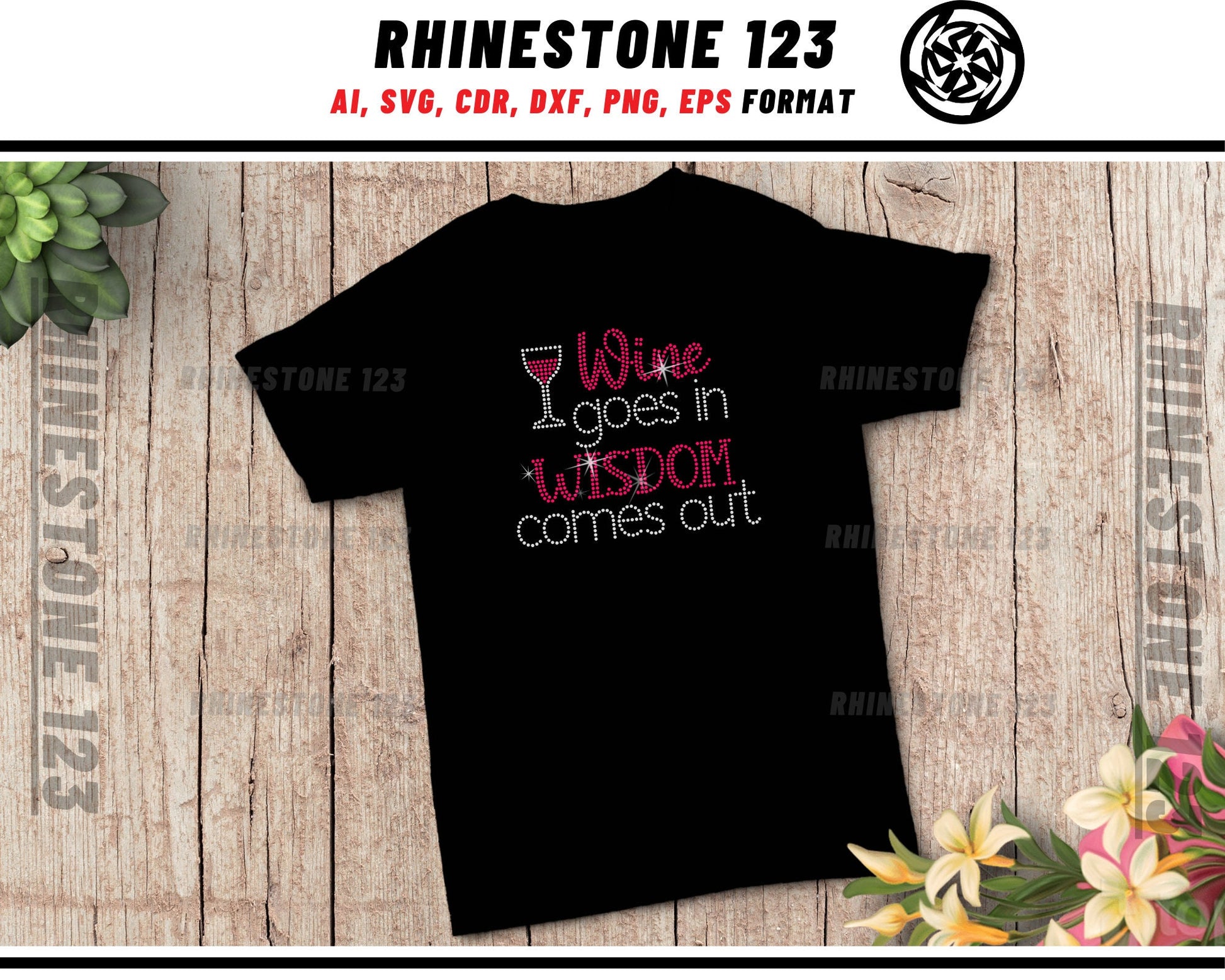 Wine Goes In Wisdom Comes Out Rhinestone Template, cricut, silhouette, Rhinestone SVG, Rhinestone File for SS10, PNG, AI, cdr, dxf, eps