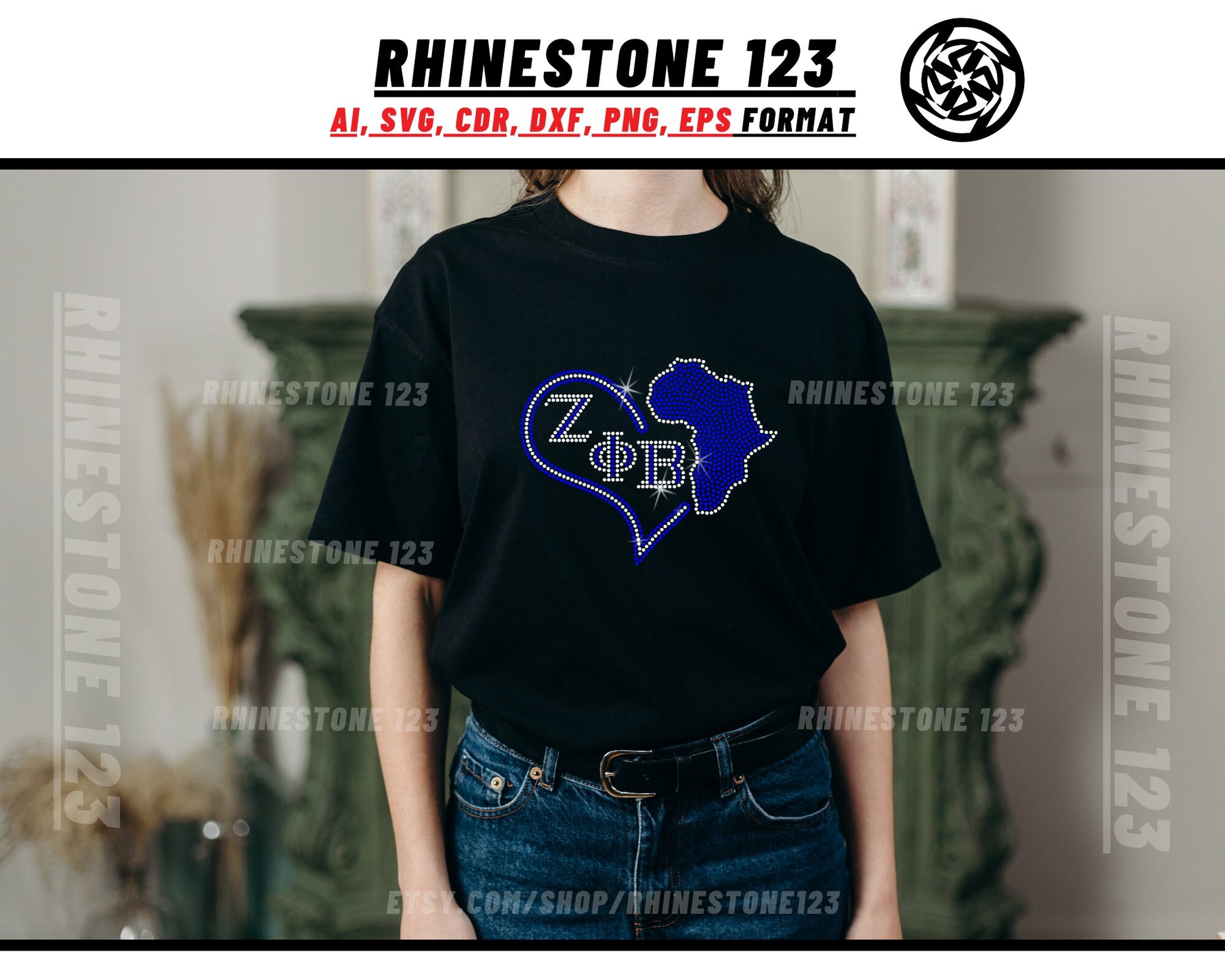 Zeta Phi Beta with Africa Heart Rhinestone Template, cricut, silhouette, Rhinestone SVG, Rhinestone File for SS10, PNG, cdr, dxf, Sorority
